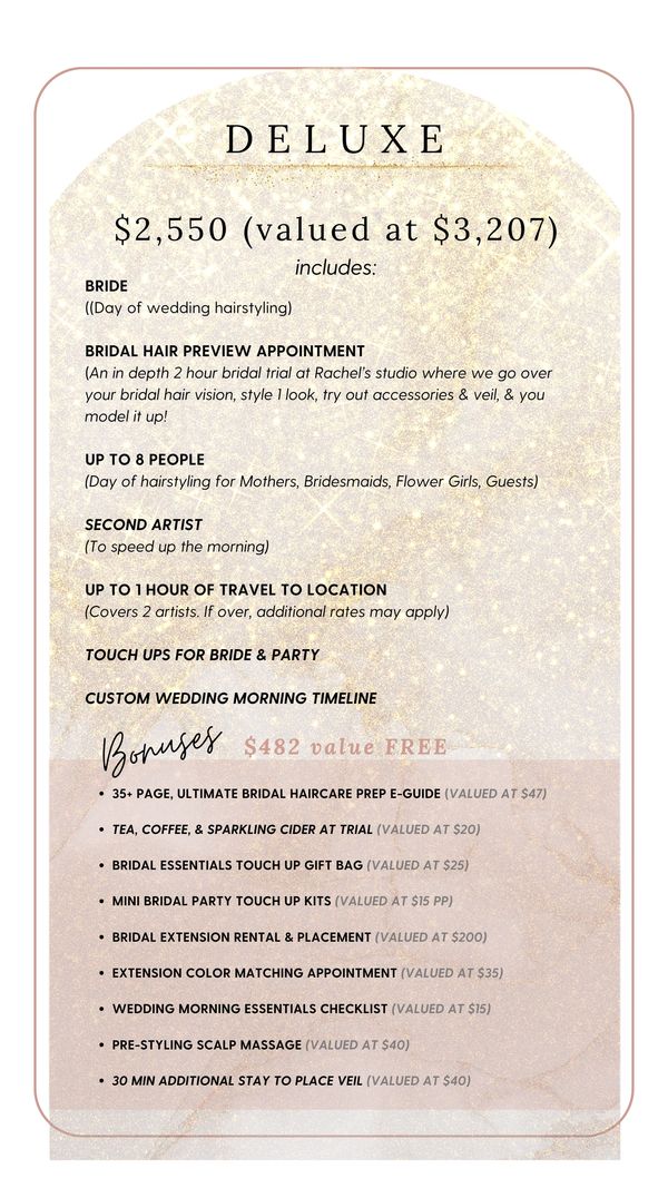I may bring a second stylist from my team for bride & party of 6+ to help speed up the morning.